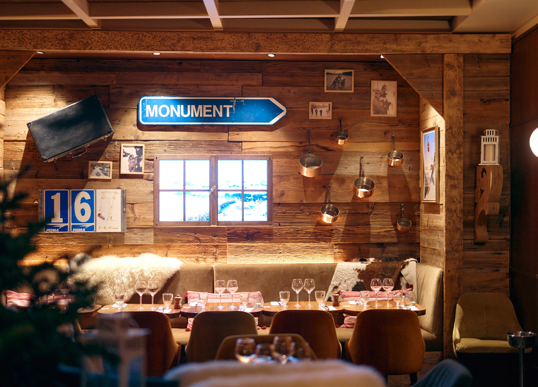 Nous vous accueillerons avec notre cheminée et nos chaudrons en cuivre ainsi que nos 22 télécabines est téléphériques vintage des années 60.