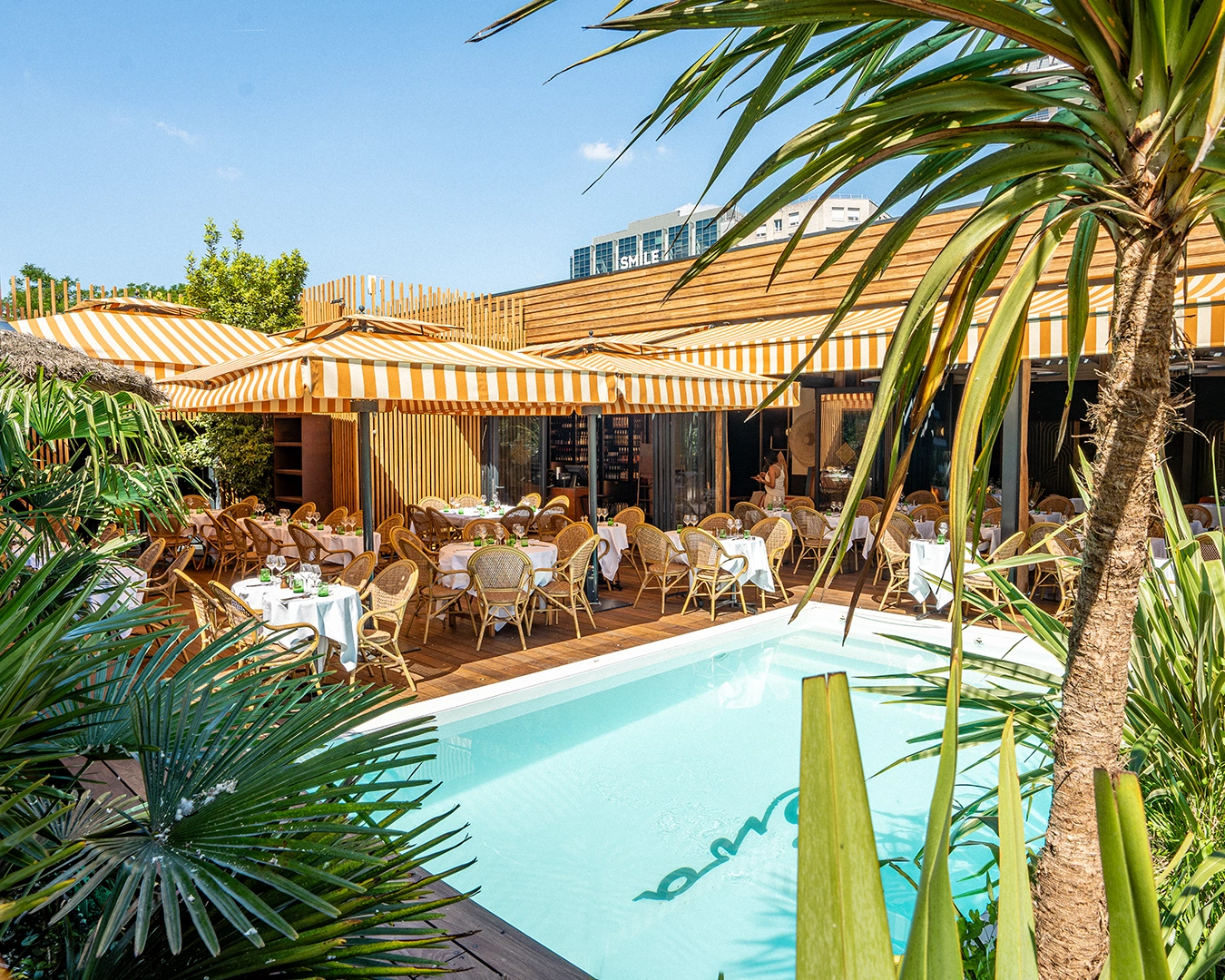 Le Splash, c’est Pampelonne à 10 minutes de Paris. Avec sa piscine, ses transats, ses couleurs chaudes et ses fauteuils en rotin, c’est les Vacances. Les espaces extérieurs offrent une vue imprenable sur la Seine et ses bateaux.